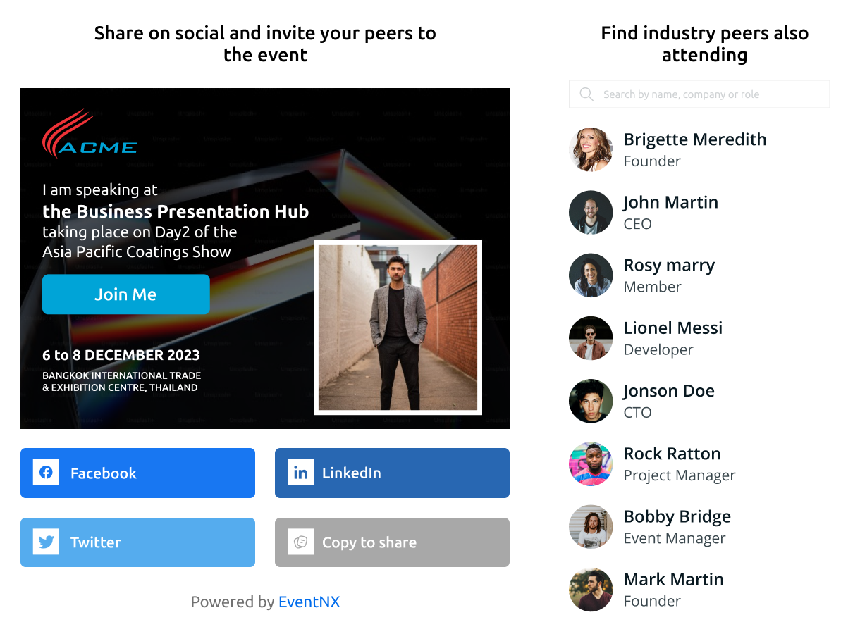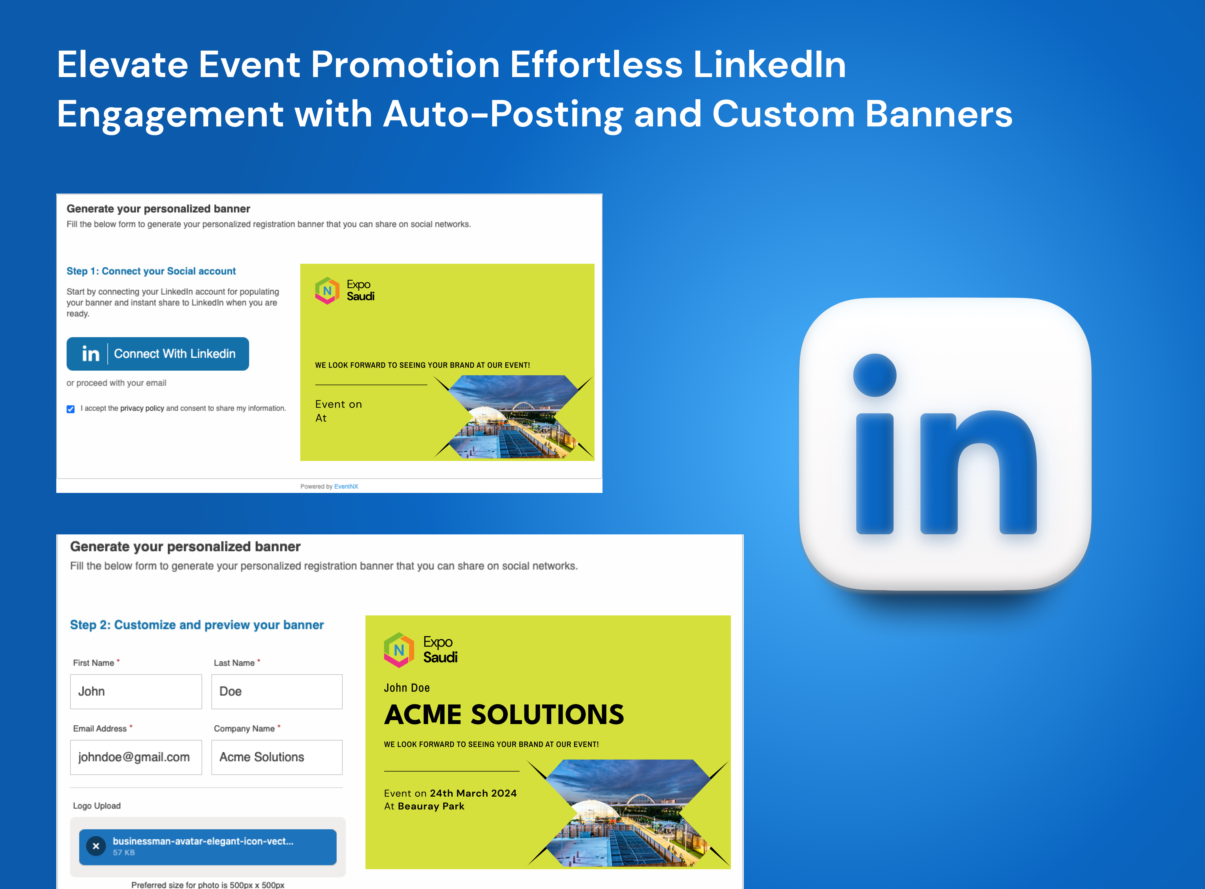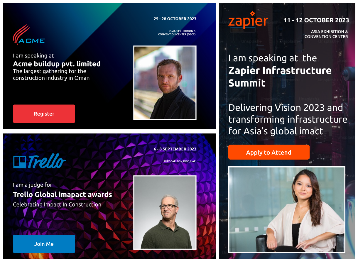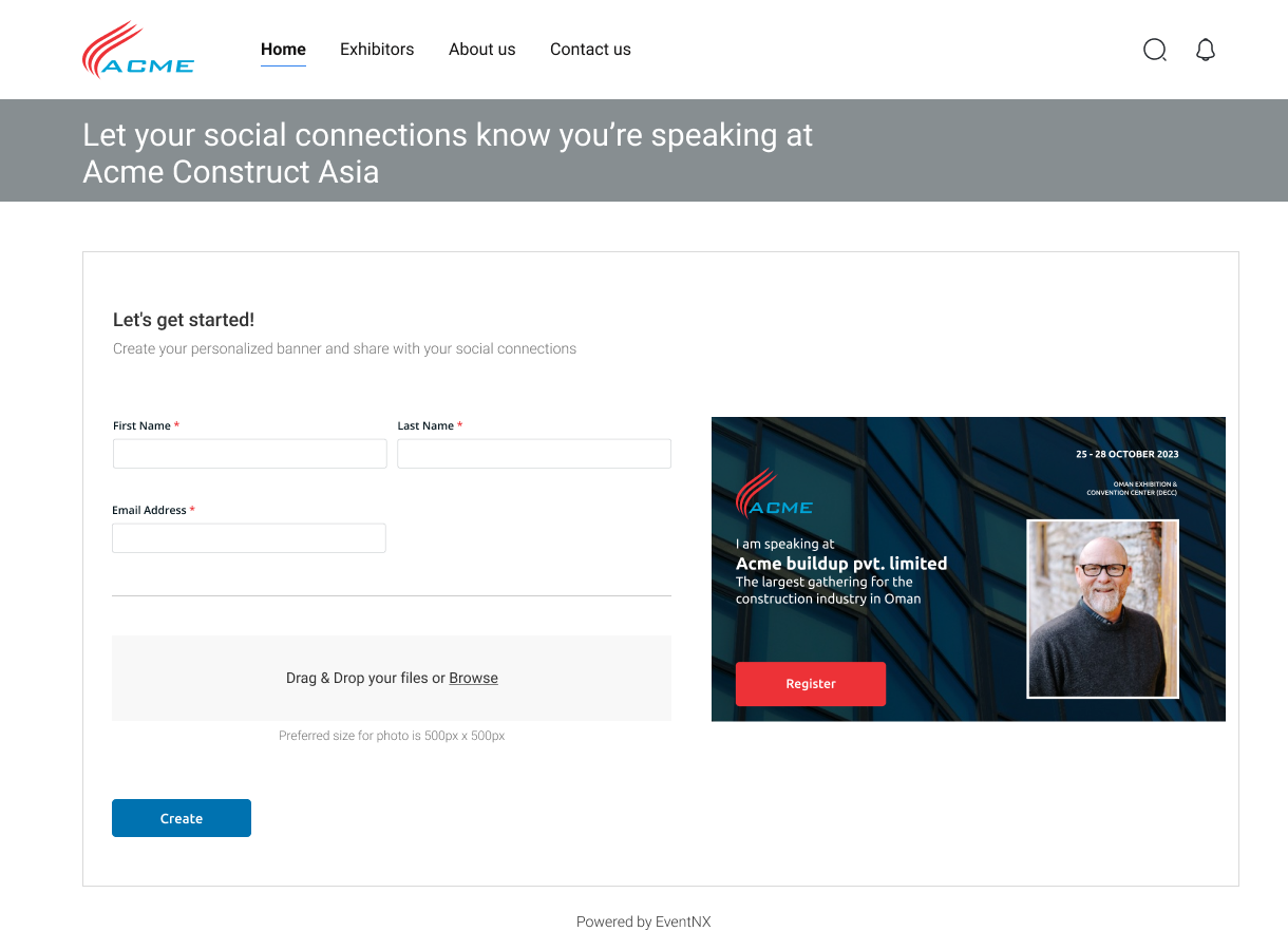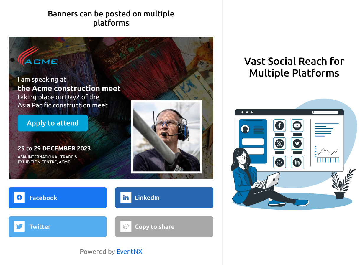 Easy to use, automated banner creation tool for the speakers, exhibitors etc. which can be shared on social channels to attract more eyes.